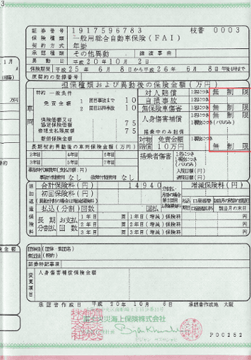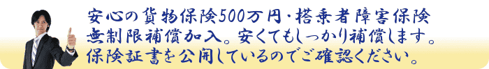 貨物保険500万補償 人身傷害保険無制限補償 加入で保険証書も公開していますのでご確認ください。